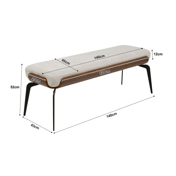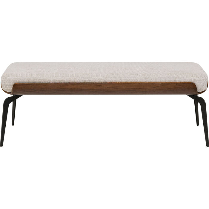 A tribute to modern living with a natural twist: this narrow upholstered bench combines clean lines with fine details, making it a subtle design statement. The light beige cover brings lightness to the interior and impresses with its pleasant feel and high durability. The look is rounded off by warm-toned wooden elements made of solid beech, which form a charming contrast to the graphic black steel frame. Whether in the hallway as a stylish shelf, in the living area as additional seating or at the foot of the bed - this all-rounder blends effortlessly into a wide variety of rooms and scores with character and function.