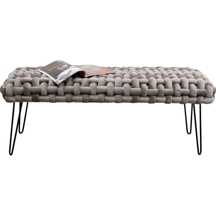 Classic elegance meets modern design - this stylish upholstered bench in timeless gray combines comfort with aesthetic sophistication. The sophisticated woven structure and velvety cover give it a sophisticated touch, while the slim silhouette offers a wide range of uses. Whether as a tasteful addition in the hallway, a cozy seat at the dining table or a stylish shelf in the bedroom - this design wonder blends seamlessly into various living concepts and sets subtle but effective accents.