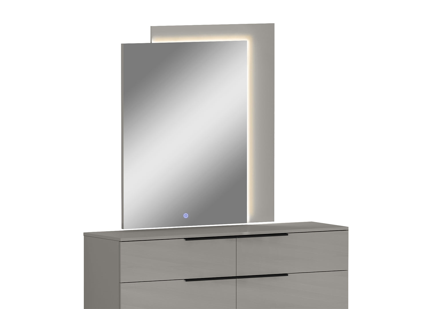 Damien Rectangular Mirror, Side Frame in High Gloss White or in High Gloss Light Grey Lacquer, with LED Light.