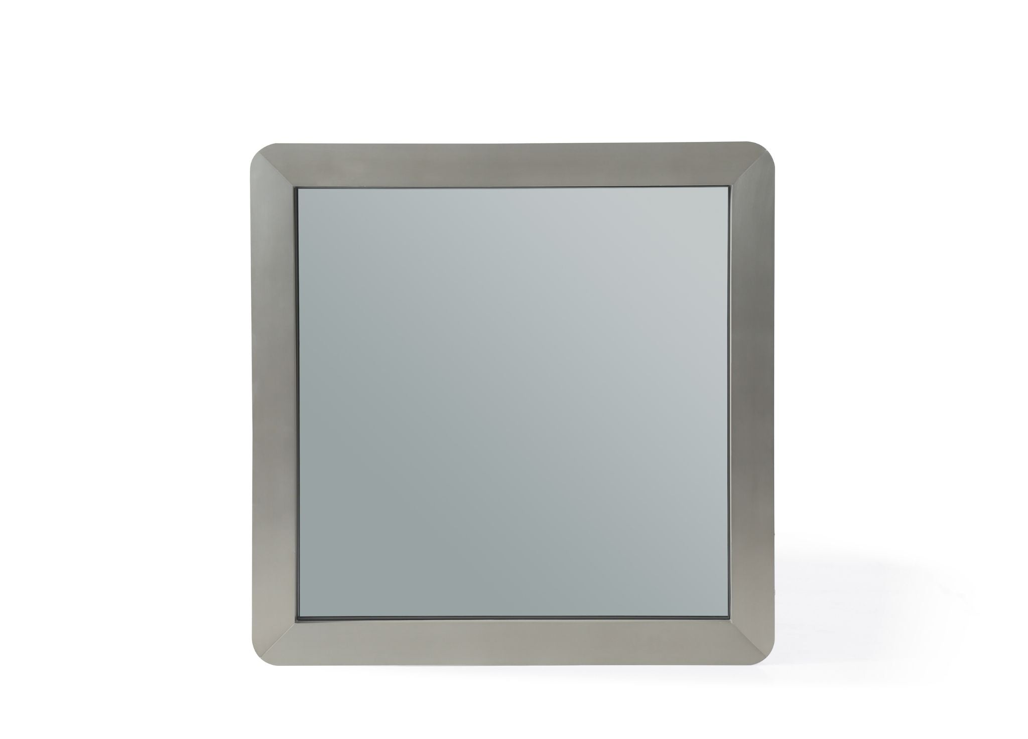 Elevate your space with our stunning Elena square mirror, featuring four sides of sleek stainless steel with a brushed nickel finish and a tawny mirror center. Perfect for adding a touch of modern sophistication to any room.