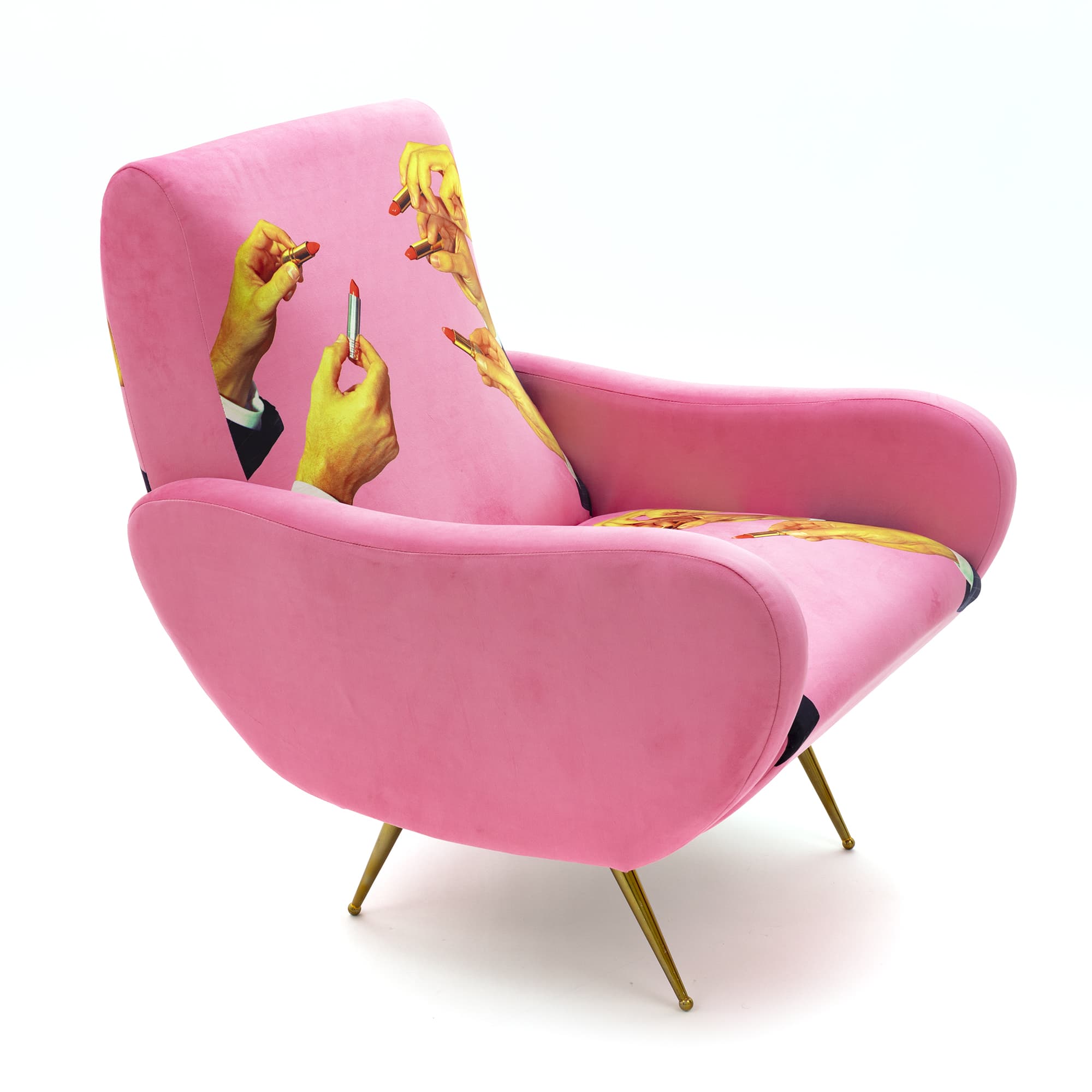 The traditional design of these 1950's style seats are upholstered with unexpected surreal images. The images of the TOILETPAPER magazine invade furniture and become comfortable objects to relax in - not only for art lovers' homes.