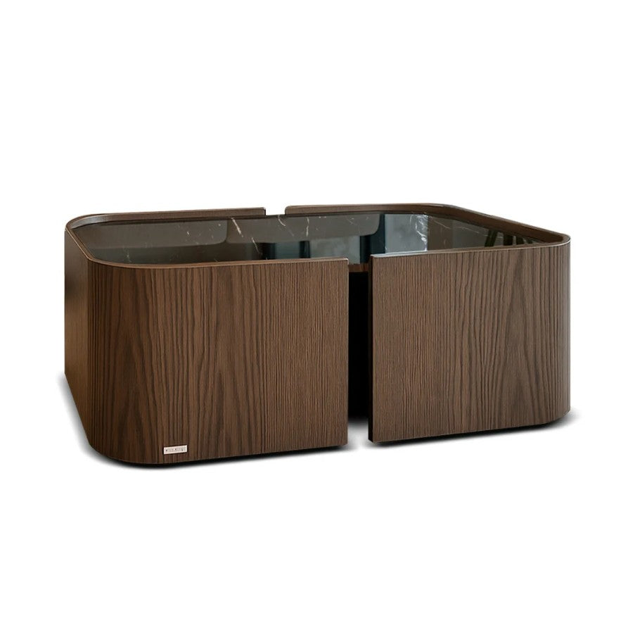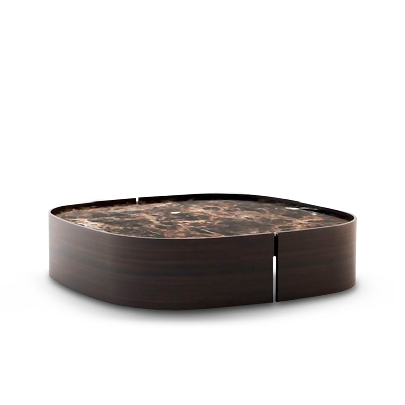 Experience the beauty of the Atmosphere coffee table and its gracefully curved edges, complemented by a luxurious wood coating. This stunning piece embodies aesthetics and adds a touch of elegance to any space. Elevate your style by opting for a top crafted from exclusive stones creating a truly unique statement. Discover the refined sophistication in every aspect of the Atmosphere coffee table.