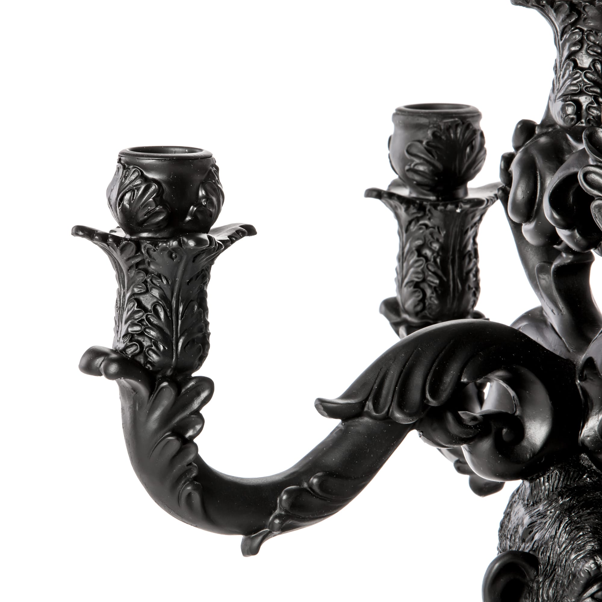 Baroque black and white candelabras. An eclectic style for candle-lit, unexpected dinner.