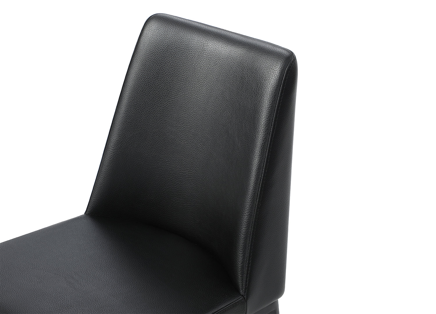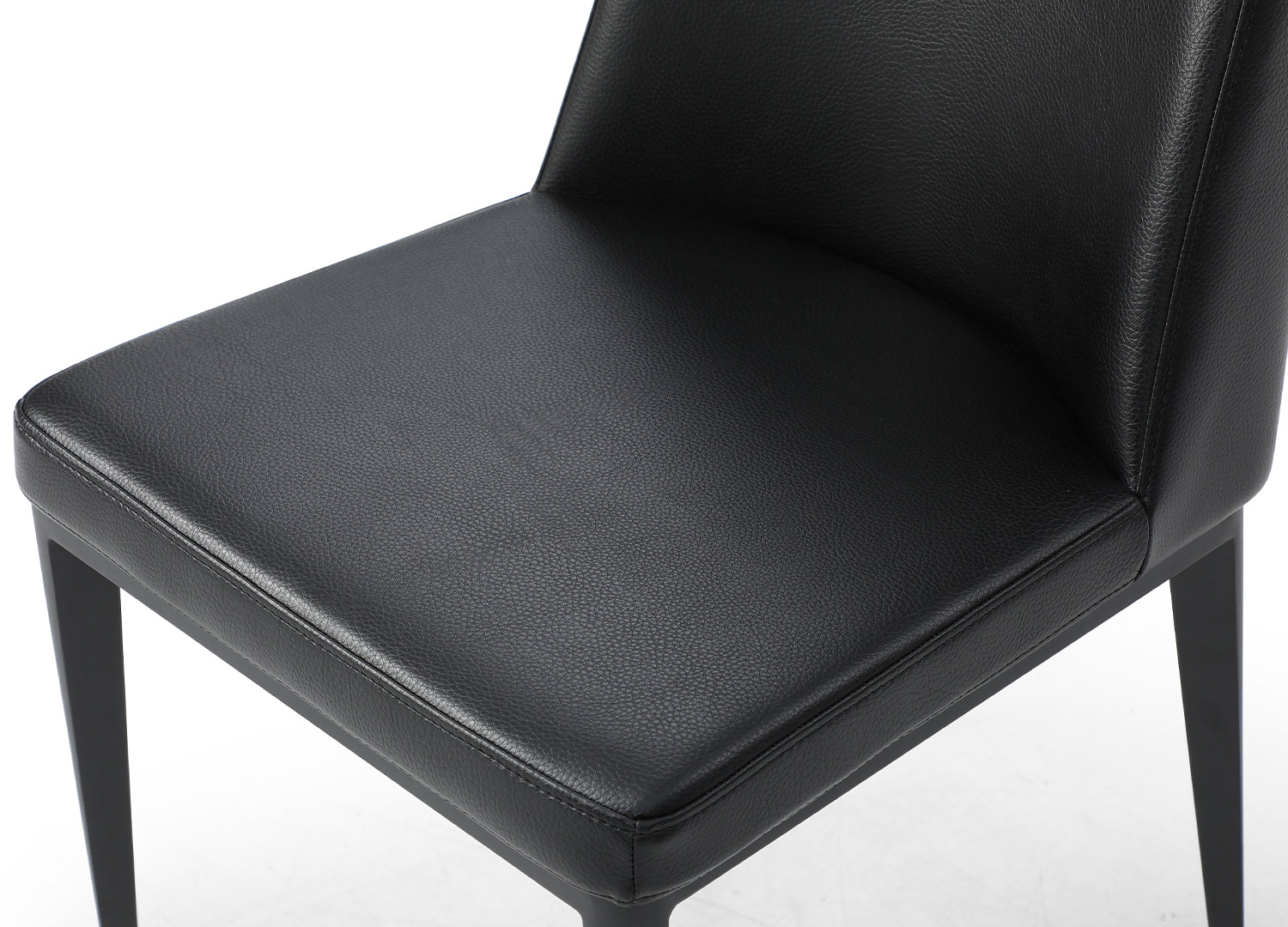 Carrie Dining Chair, available in Black or Light Grey Faux Leather with Sanded Black Powder-Coated Legs.