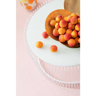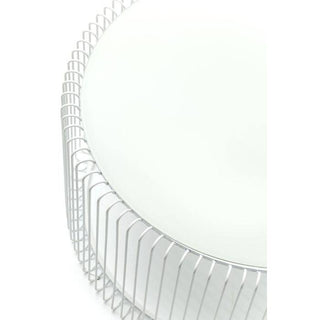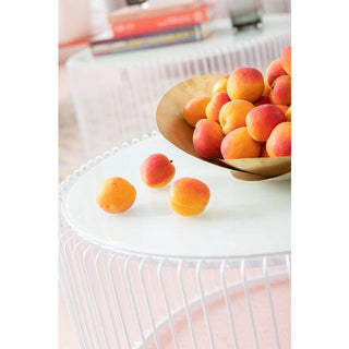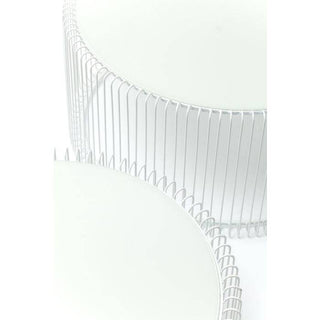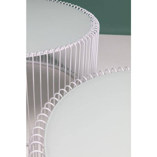Coffee table: fine lines in white. The Wire White coffee table set looks as if sketched and celebrates the elegance of minimalism. A white, finely drawn round frame with slender metal rods supports a table top made of white coloured safety glass. A modern and cleverly designed composition that, despite its effective appearance, appears light-footed, almost weightless. In any case an enrichment for any modern, reduced furnishing style. The Wire series is available in white, black, copper and two different sizes.