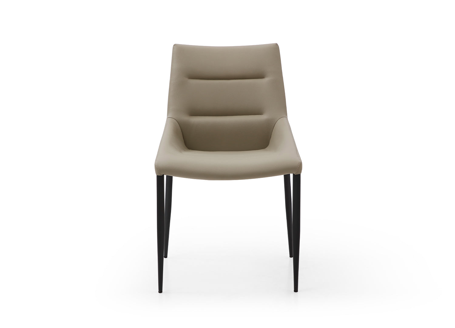 Kaya Dining Chair, Light Grey Faux Leather, Sanded Black Powder-Coated Legs.
