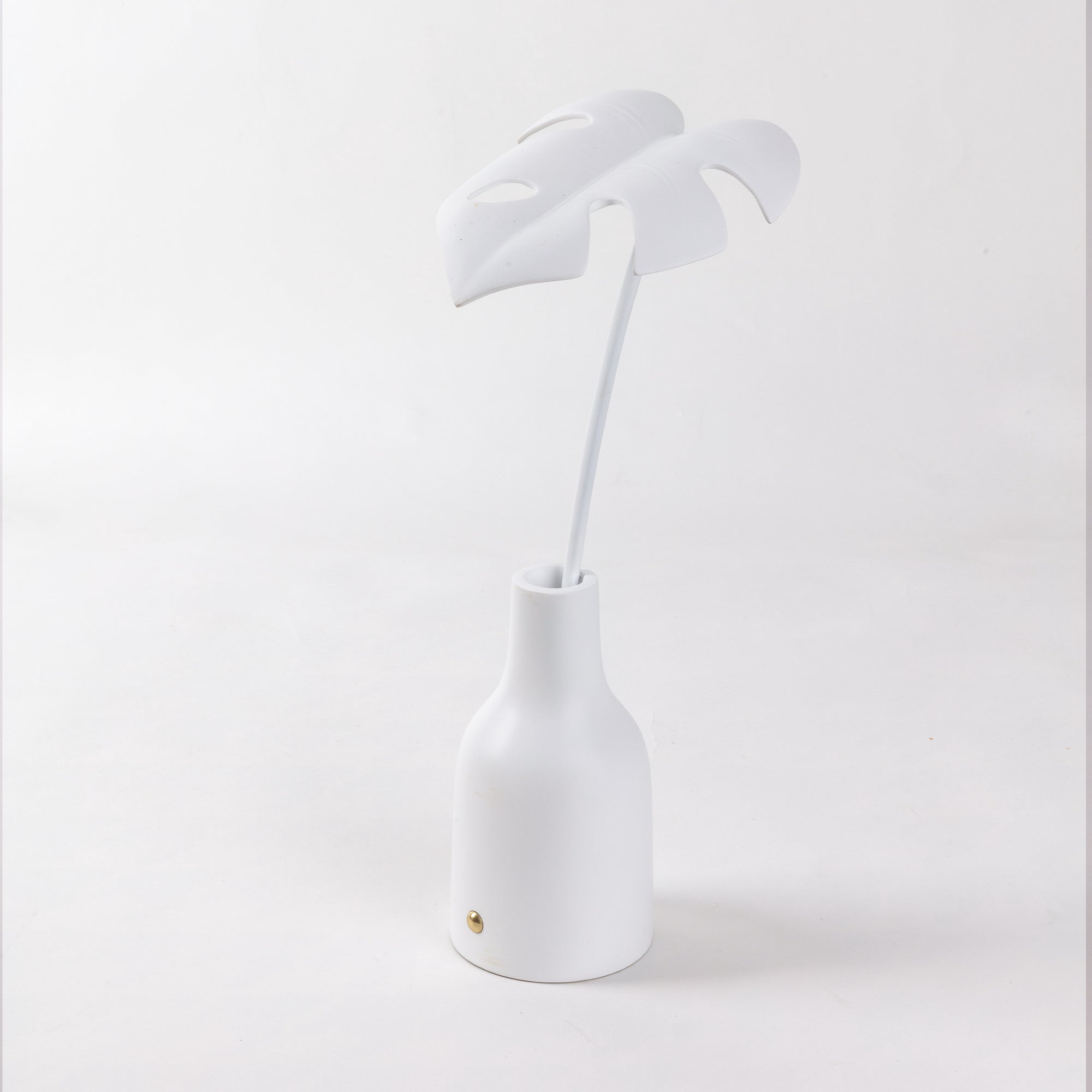 These leaves, detailed like classical sculptures, have a formal balance with their vase and are an elegant alternative in the panorama of table lamps. The relationship between light and plants has always fascinated me through the wonder of photosynthesis, in the same way the plant subject and lighting has created a very intriguing combination in my imagination.