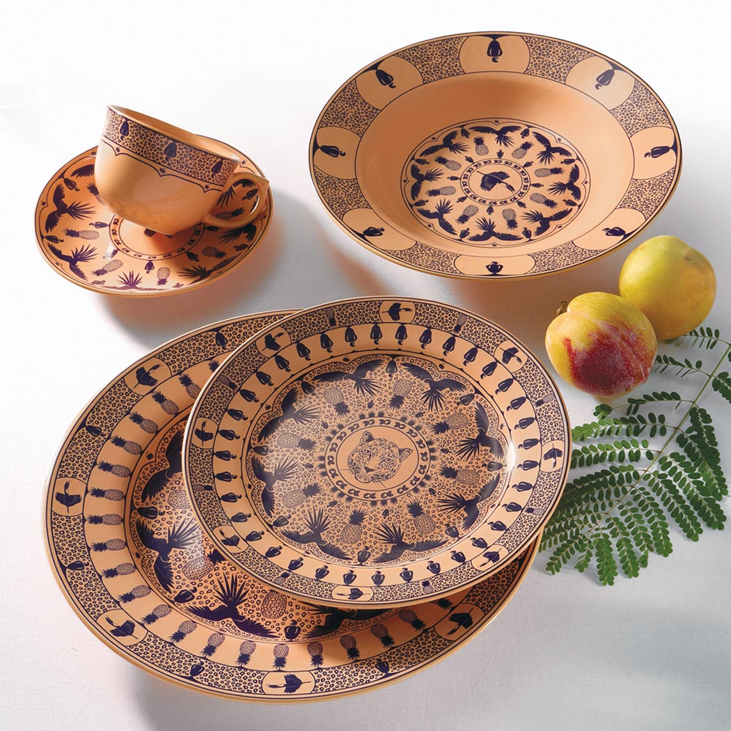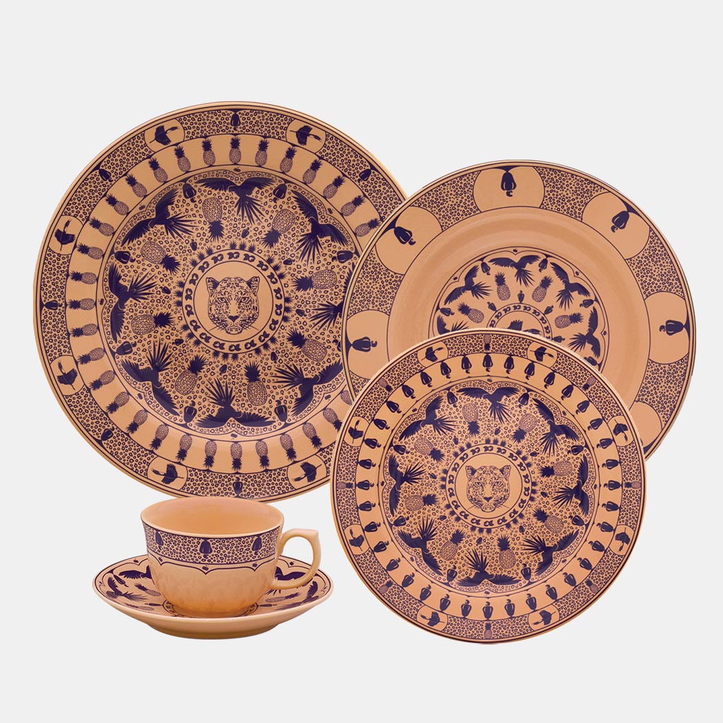 In this collection of Oxford Dinnerware, traditional porcelain meets Brazilian wildlife to create a captivating fusion. Named after the majestic flamingo and adorned with contrasting colors, these dinnerware sets are designed to make a statement with elegance. Their geometric patterns and depictions of flora and fauna create a sense of dynamism and vitality throughout each piece.